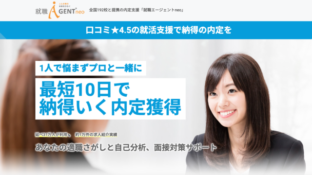 新卒就職エージェントneo|最短で「納得の内定」を目指す就活支援サービス新卒就職エージェントneoは、大学・大学院・専門学校・短大生を対象にした完全無料の新卒向け就職支援サービスです。「早く内定を取りたい」「でも妥協はしたくない」そんな就活...